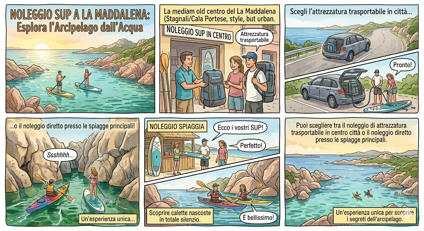 🏄 SUP rental in La Maddalena: explore the archipelago from the water Stand-up paddling is a unique way to reach hidden coves in silence. Choose portable rental in town or rent directly at the main beaches.