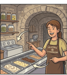 - I gusti del territorio: Cercate le varianti ispirate alla Sardegna, come il gelato al mirto, al miele di corbezzolo o con mandorle tostate. - Il momento ideale: La sera, quando il borgo si anima e l'aria rinfresca. È il modo perfetto per concludere una giornata trascorsa tra le calette di Caprera.