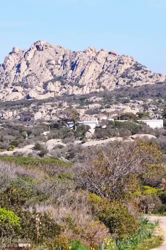 Il percorso dei Due Mari è il sentiero che divide l'isola longitudinalmente, con viste simultanee sul versante delle Bocche di Bonifacio e su quello del mare aperto verso la Sardegna. Monte Fico, al centro dell'isola, è il punto più alto: la lettura del paesaggio da qui è totale — si vedono tutte le isole dell'arcipelago insieme, da Spargi a Razzoli.
