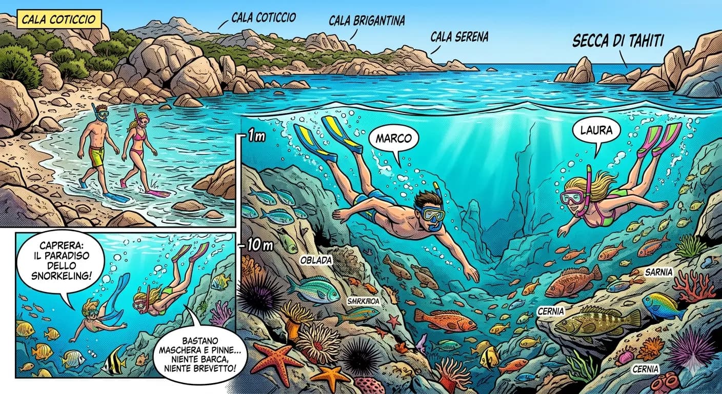🤿 Snorkeling a Caprera: Il Paradiso a portata di Riva Non serve una barca e non serve un brevetto per esplorare le meraviglie sottomarine dell'isola.