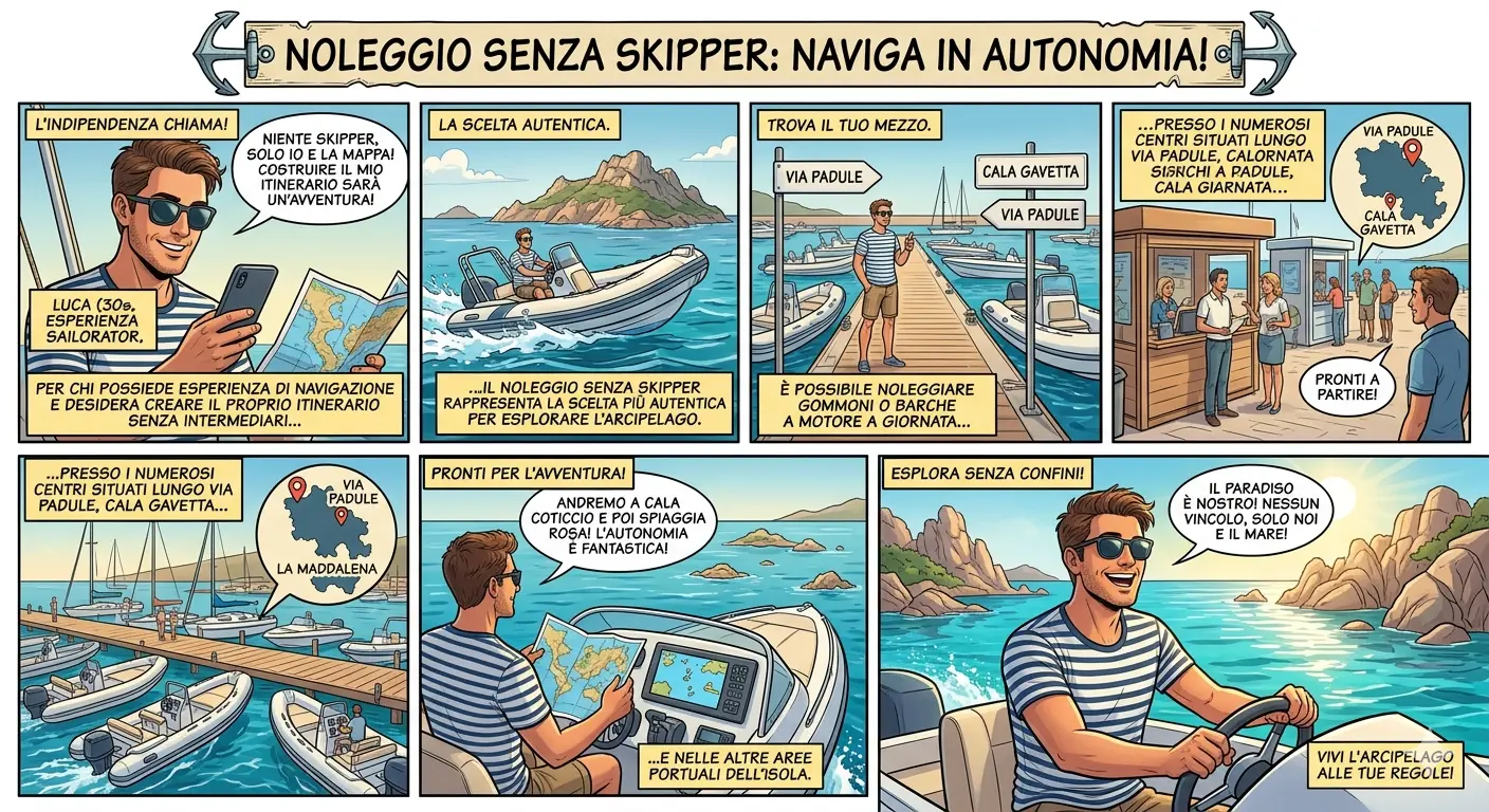 Noleggio senza Skipper: Naviga in Autonomia Per chi possiede esperienza di navigazione e desidera creare il proprio itinerario personalizzato senza intermediari, il noleggio senza skipper rappresenta la scelta più autentica per esplorare l'Arcipelago. È possibile noleggiare gommoni o barche a motore a giornata presso i numerosi centri situati lungo Via Padule, Cala Gavetta e nelle altre aree portuali dell'isola.